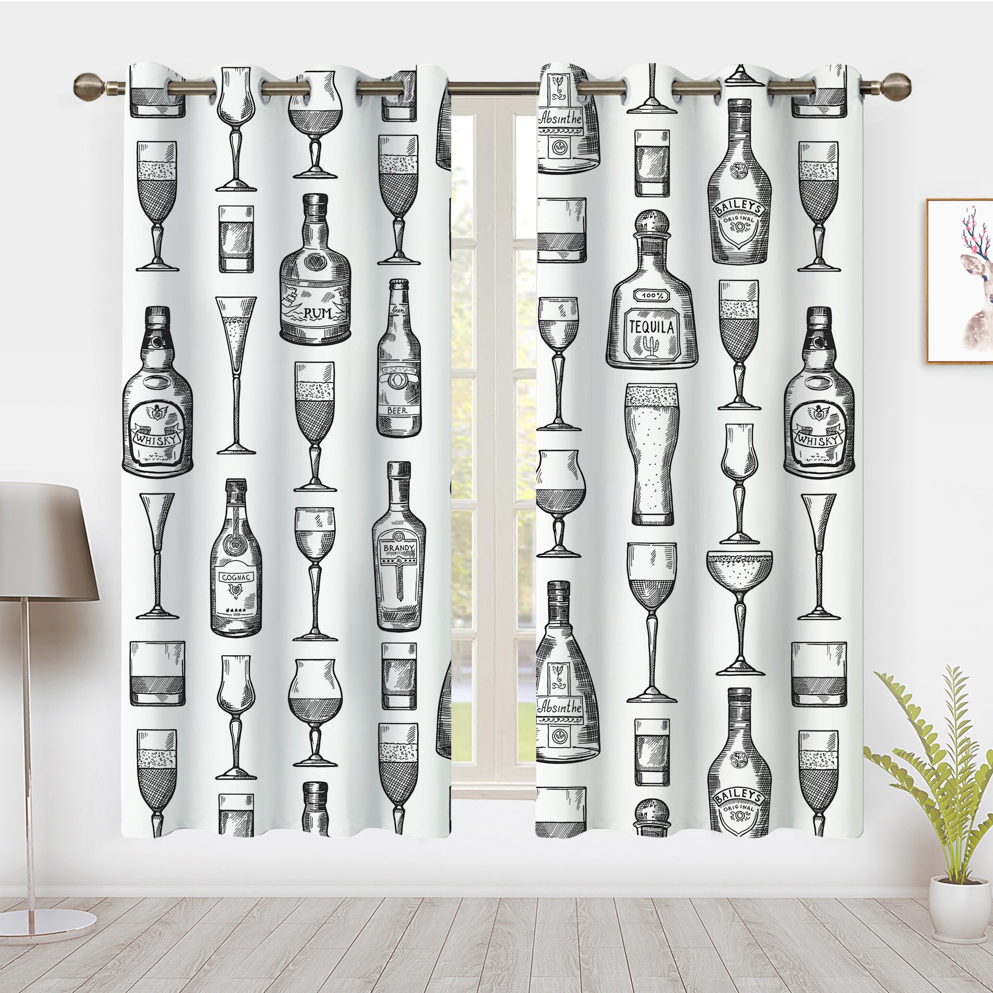 Bar Dining room decoration art Curtains, Wine Beer glass Window Treatments Panel Pair Blackout Curtains, For Home Bedroom Dorm privacy Decor