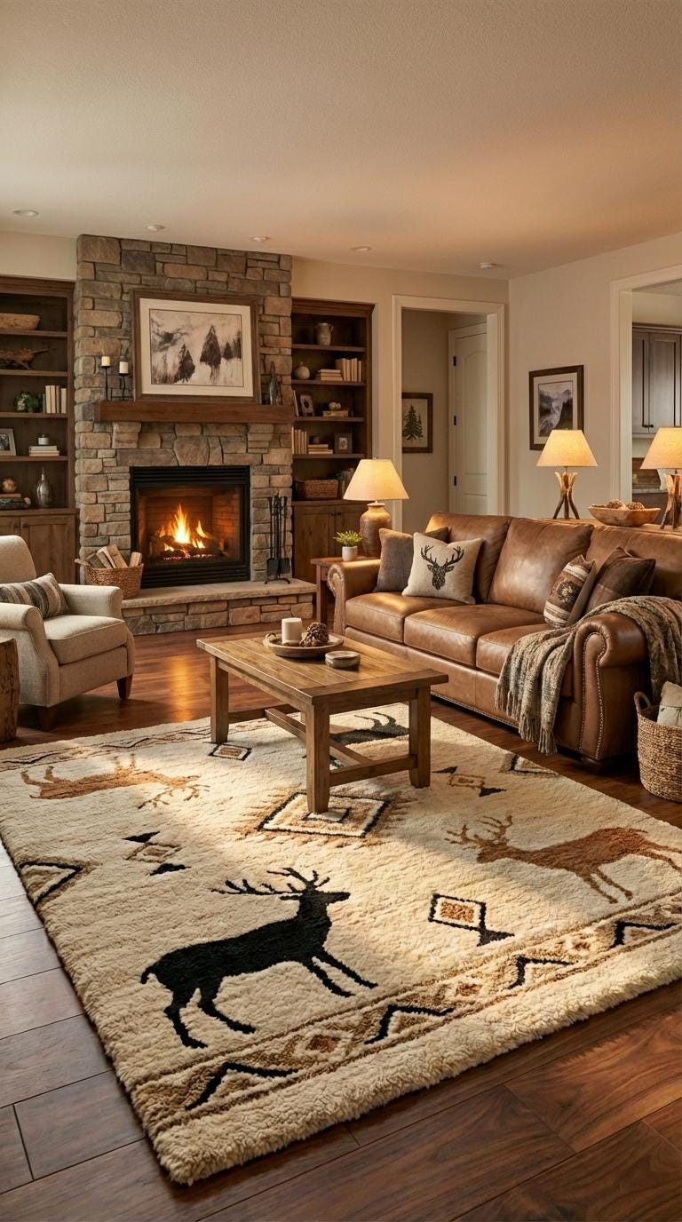 Hand Tufted Deer Area Rug, Rustic Cabin Lodge Wool Rug, Neutral Woodland Living Room Rug, Farmhouse Entryway Carpet, Handmade Nature Rug