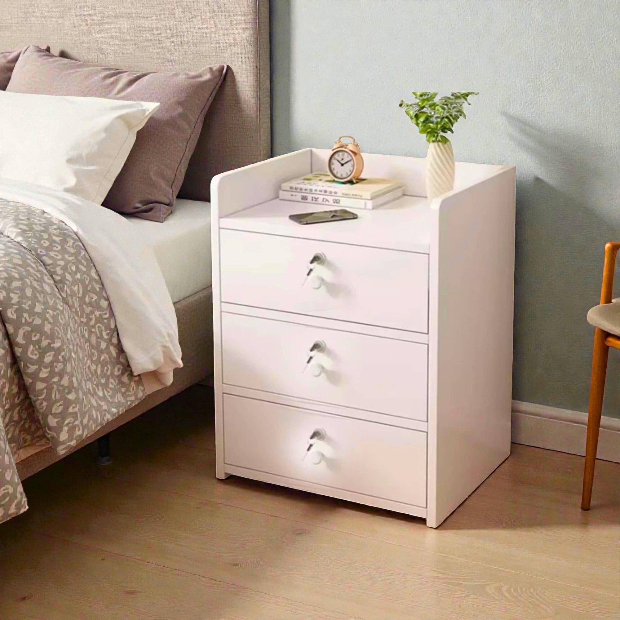 Bedside Table with 3 Wooden Drawers for Bedroom Storage