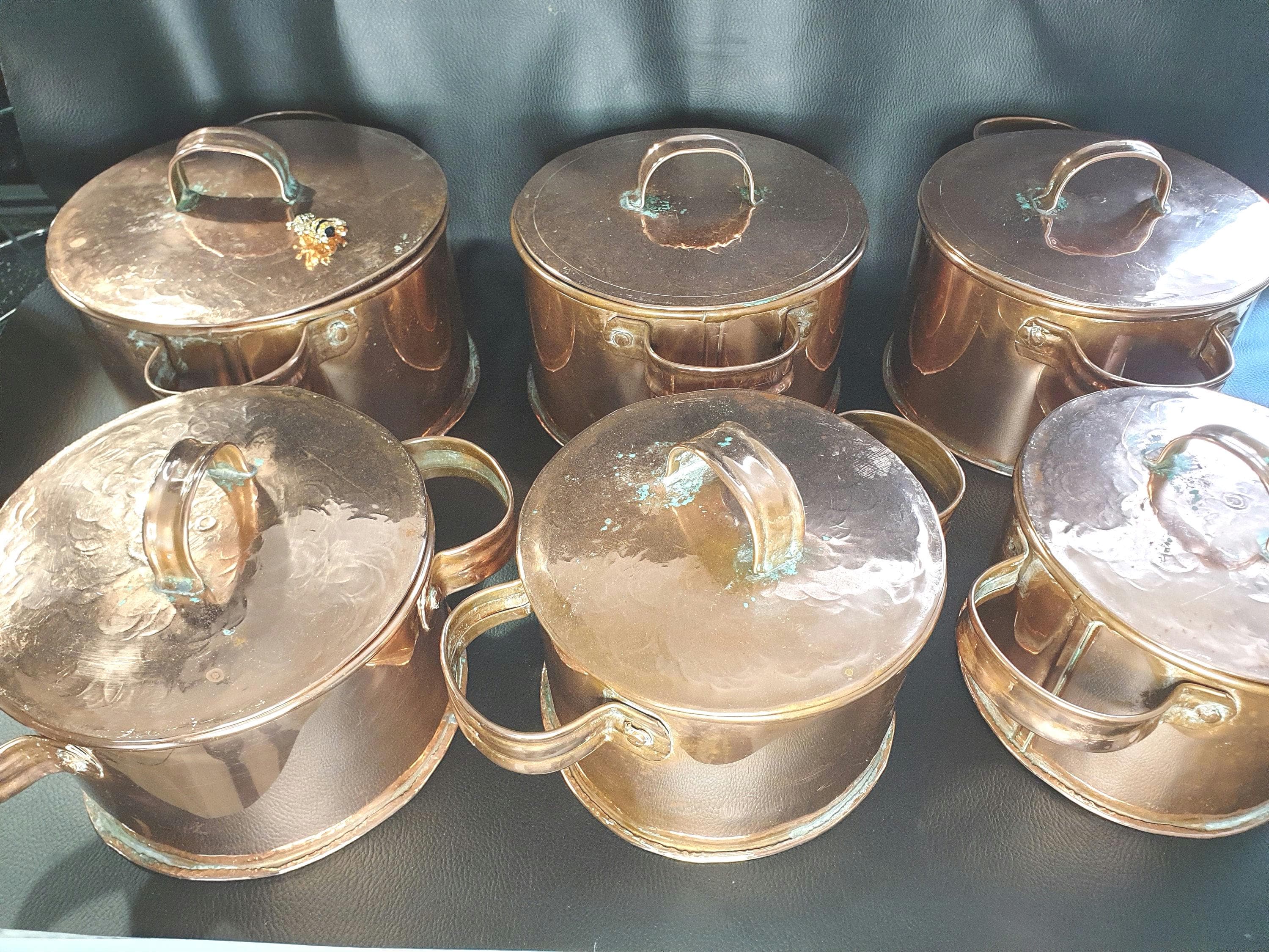 Vintage French Copper Pans with Lids, Kitchen Decor, Cookware
