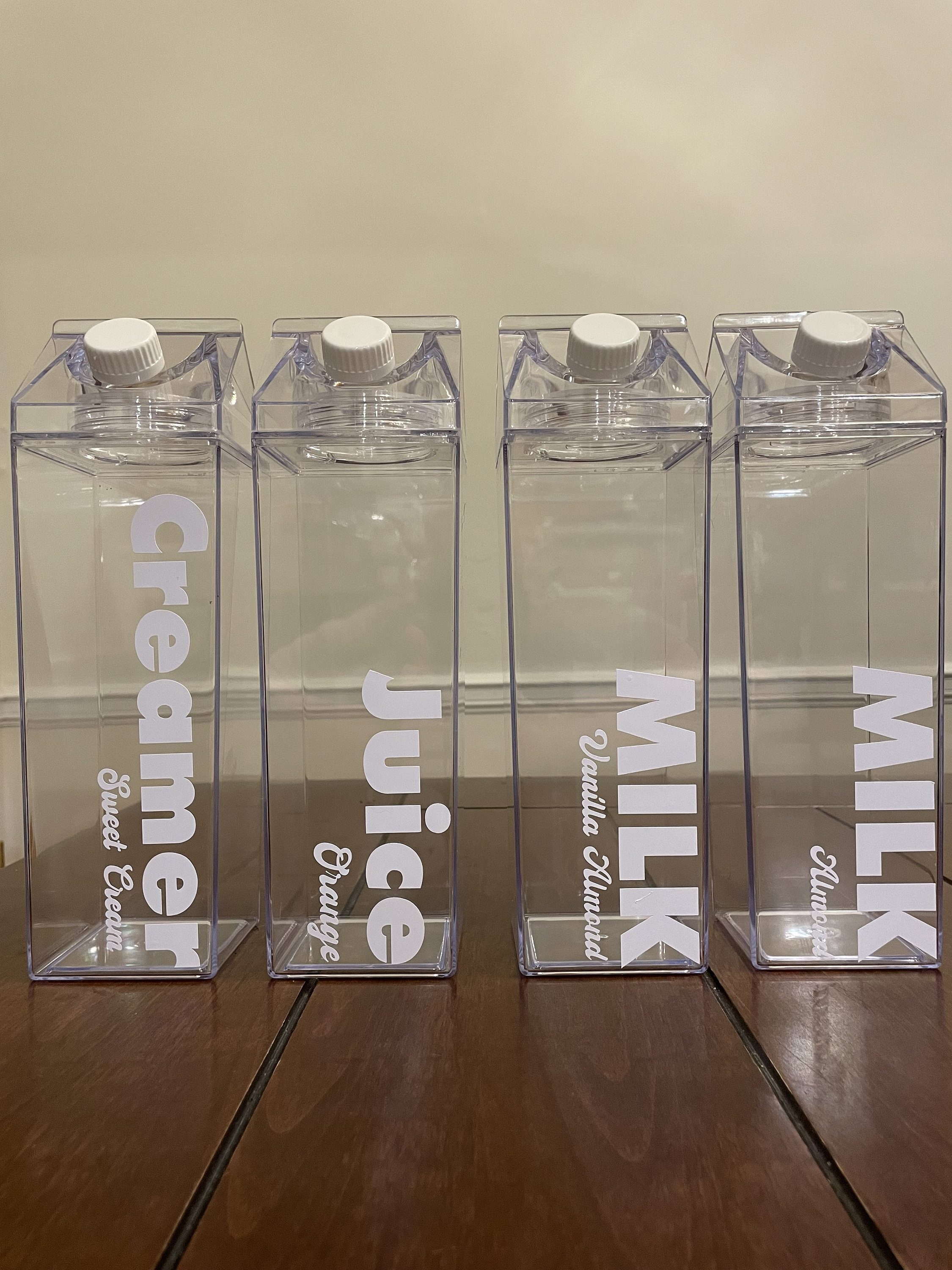 Personalized 34 Oz Milk Carton, Clear Plastic Milk Box, Leakproof Square Juice Bottle