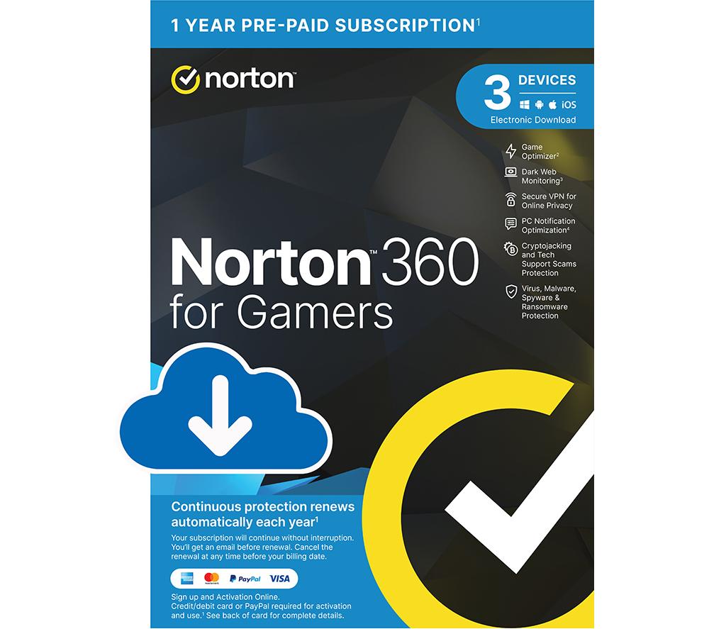 NORTON 360 for Gamers - 1 year for 3 devices, Download