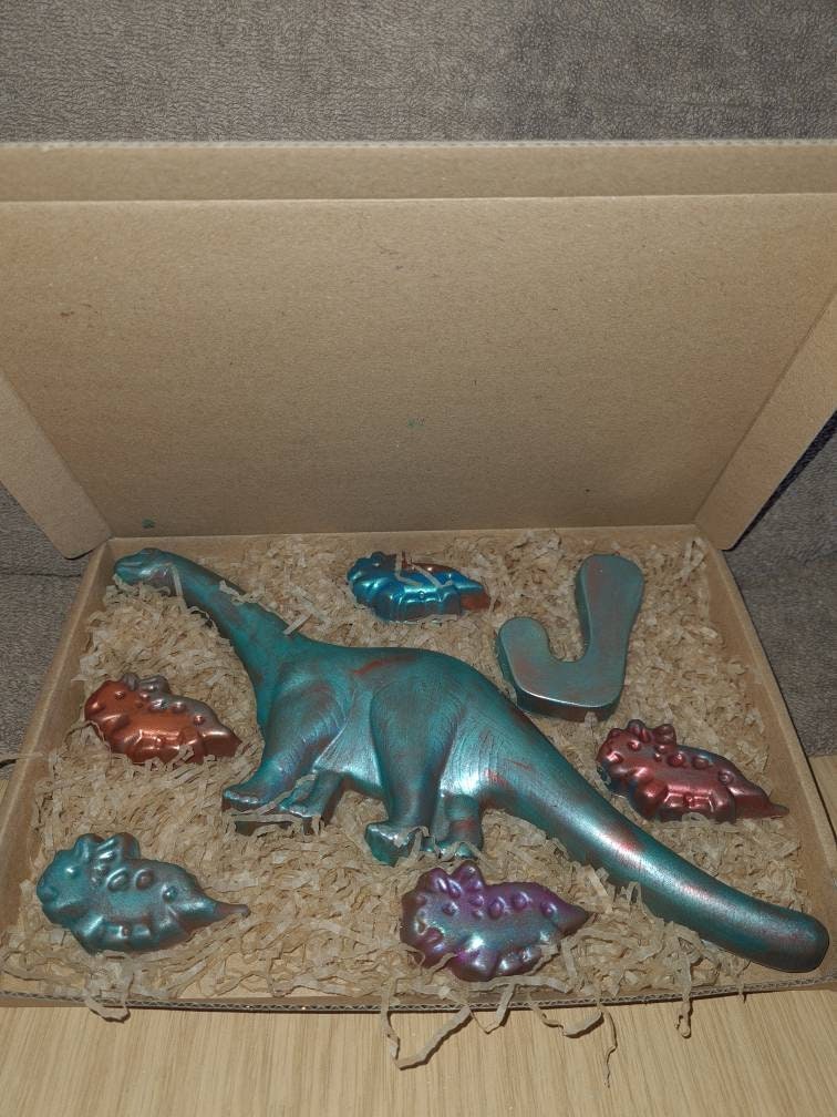 Handmade Belgian Chocolate large dinosaur & 6 smaller chocolate dinosaurs in box