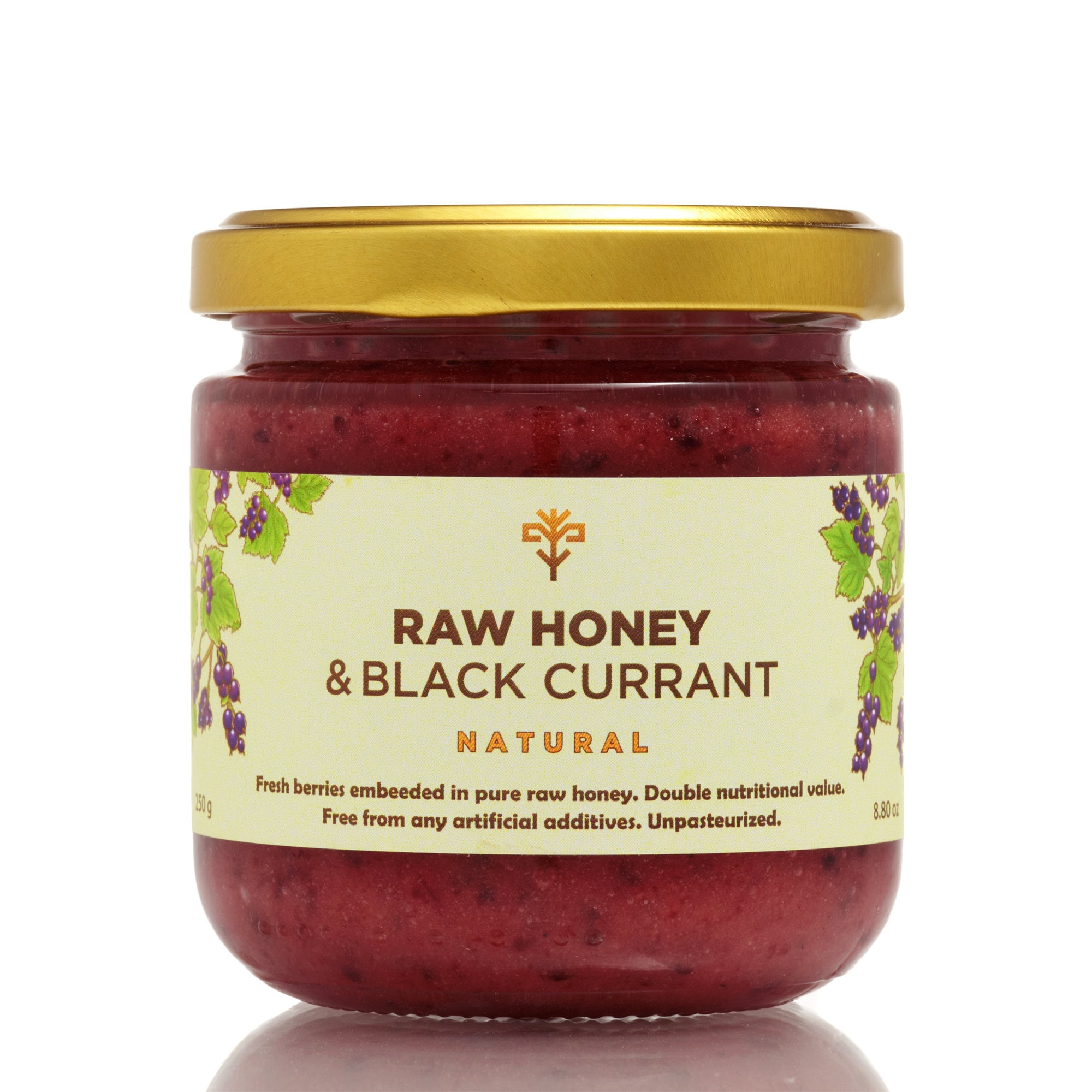 Earthbreath Raw Honey & Black currants - 250g - Unpasteurized - Pure Natural Jam Alternative - No Additives, Sugar Free - Fresh berries
