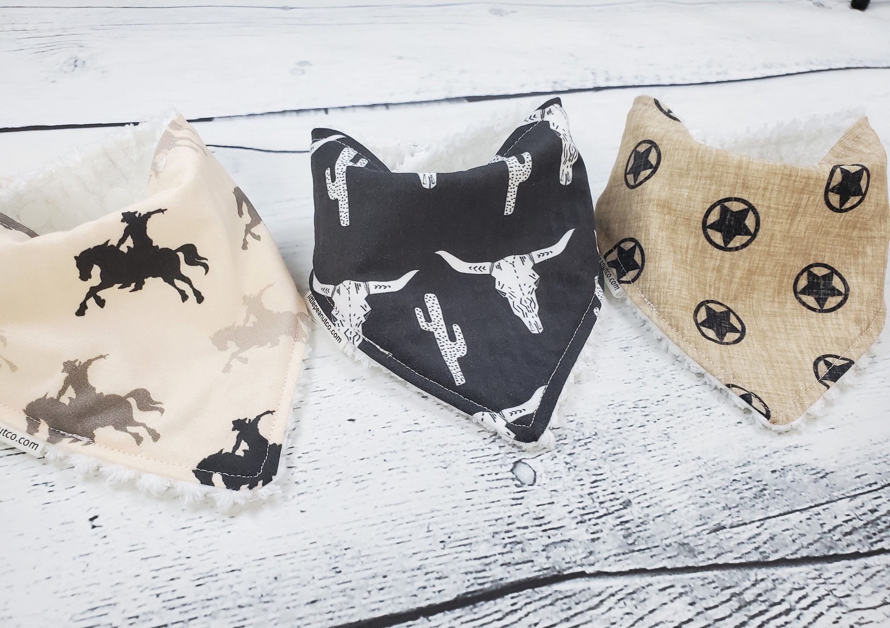 Cowboy Baby Bib - Western Baby Bib - Bandana Bib - Horse Baby Bib - Longhorn Baby Bib - Western Baby Gift - Cowboy Baby Gift - Baby Bibs