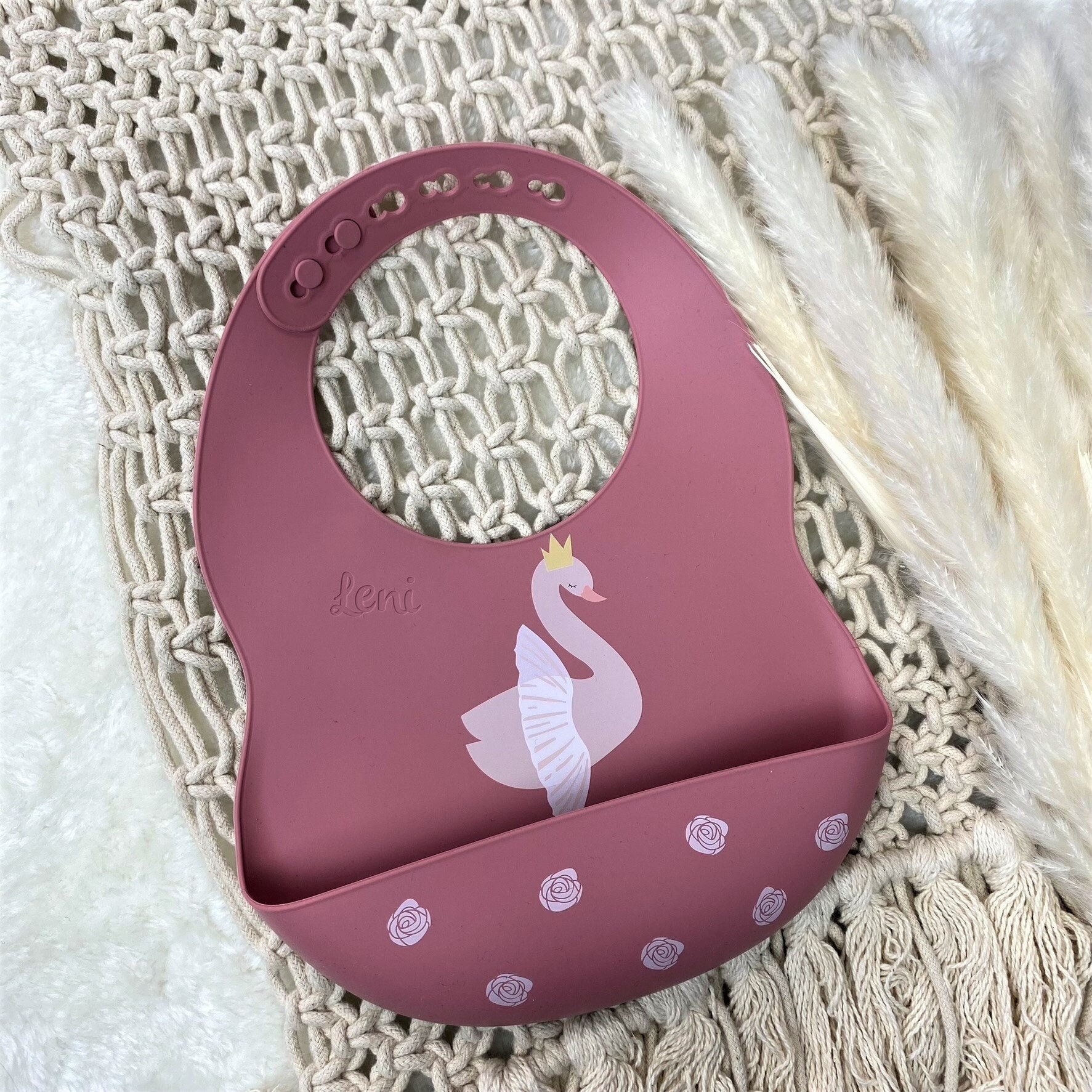Bibs with drip tray, silicone bibs swan Tryco, baby bibs with name, personalized gifts baby