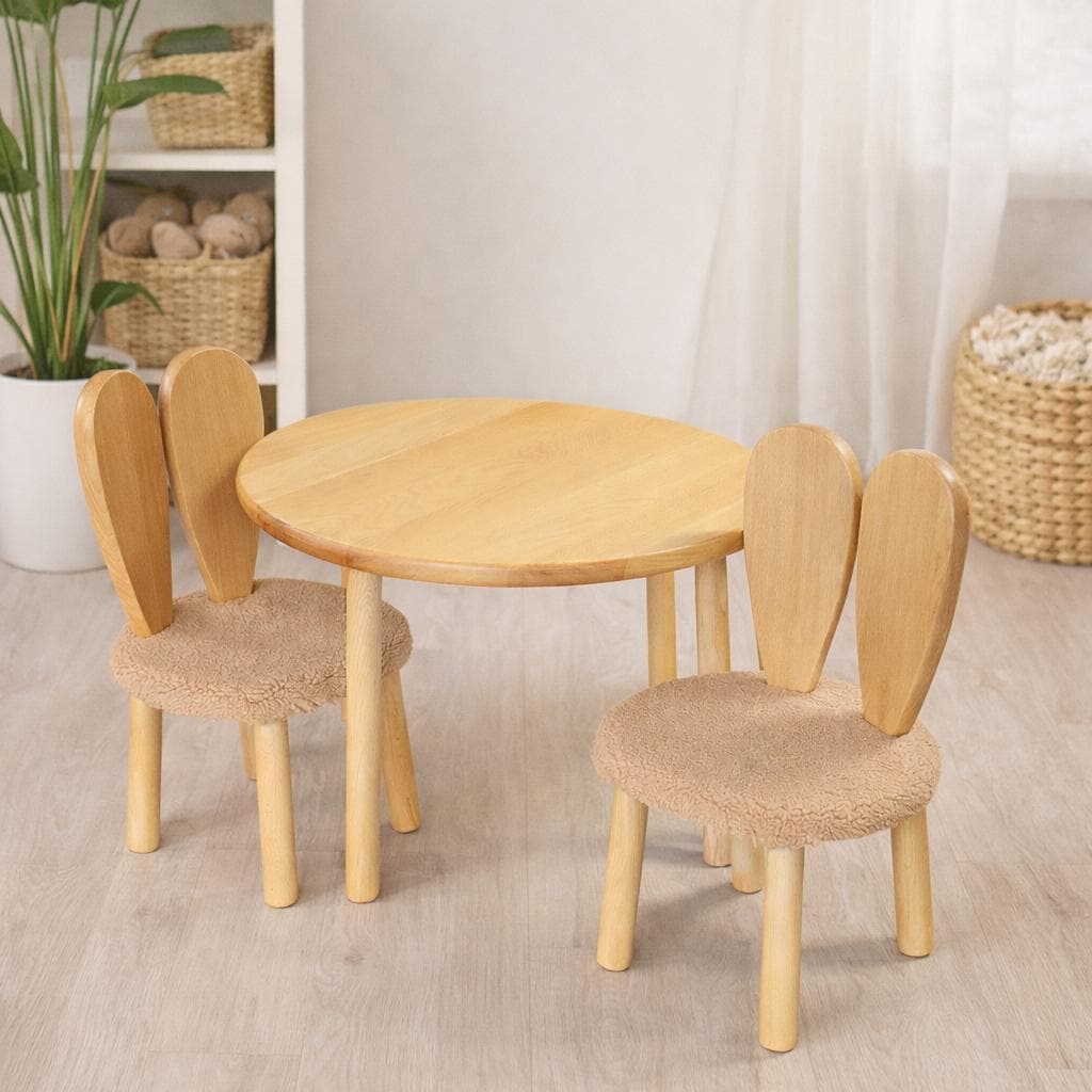 Montessori Wooden Table and 2 Bunny Chairs, Beech Wood Toddler Furniture, Waldorf Playroom Set, Handmade Kids Desk