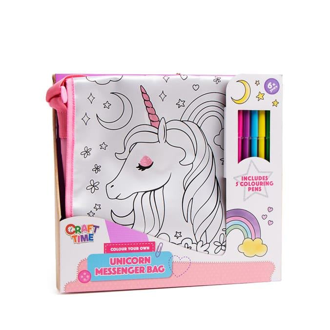 Colour Your Own Messenger Bag Includes 1x Bag, 5x Colouring Pens Suitable For Ages 6 Years + for DIY Activities