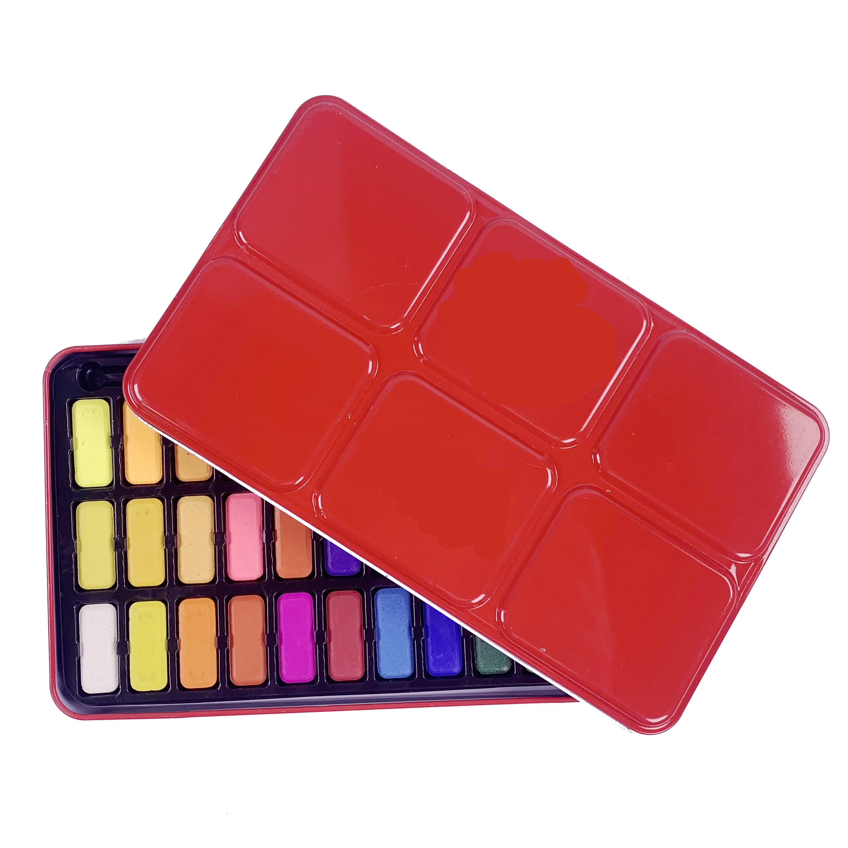 Watercolour Paint Palette Set Tin- 36 Watercolour Paint Palette - Red Tin Box - Easy to store Watercolour paints for children