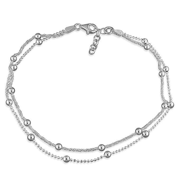Sterling Silver Double Strand and Balls Anklet Ankle Chain