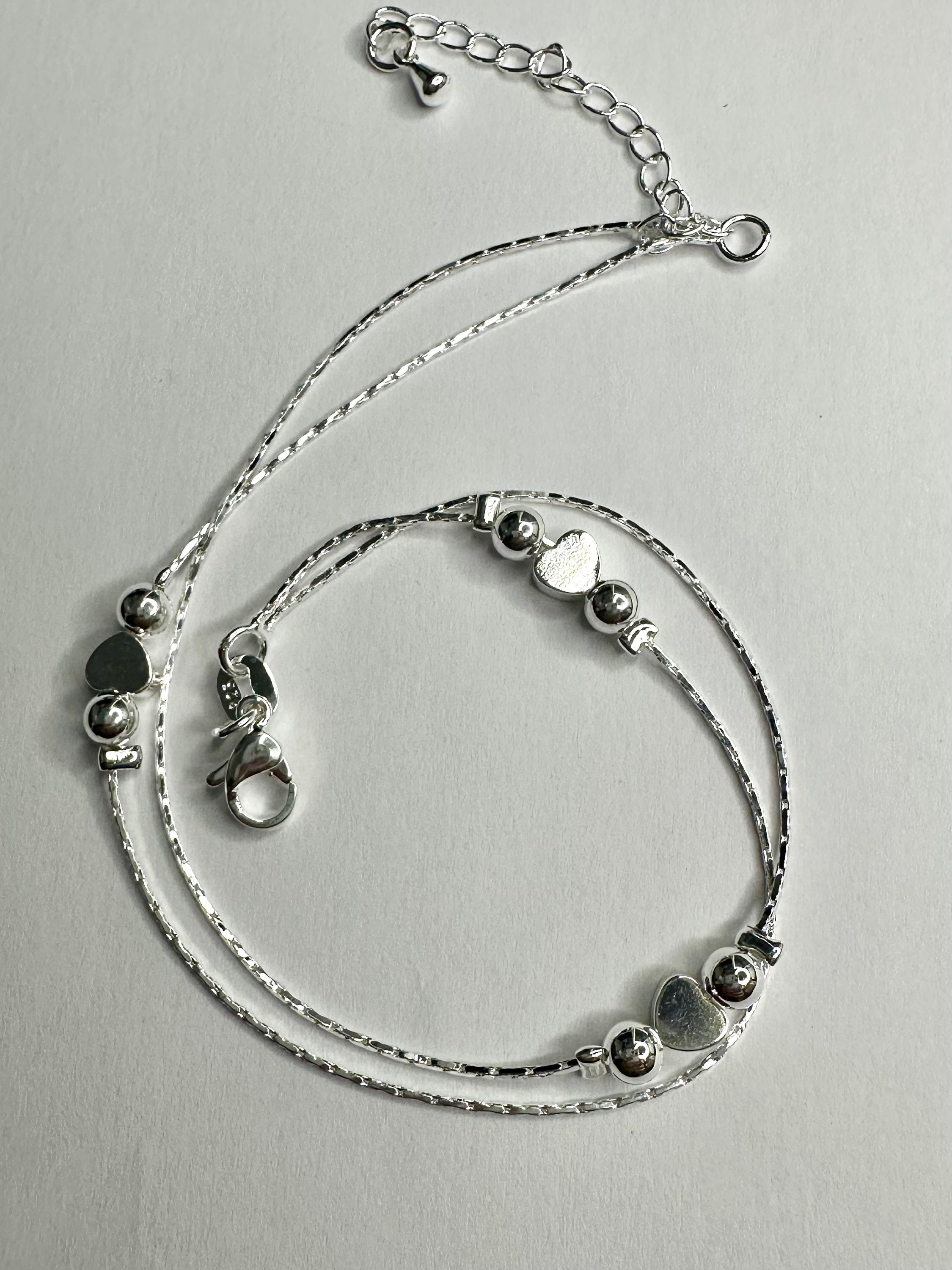 Sterling Silver Heart Anklet Boho Beach Jewelry
